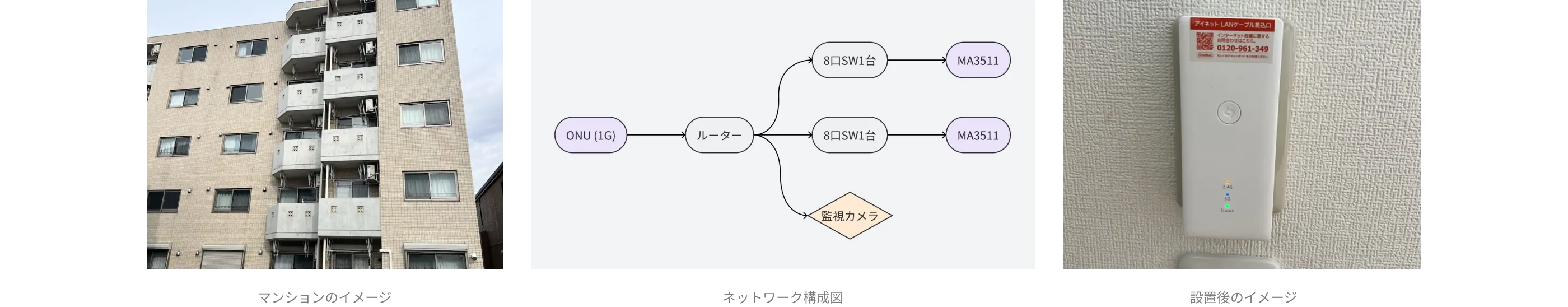 三和住宅様が管理する栃木県宇都宮市のマンション(全15戸)に、Wi-Fi 7対応の脱着式埋込型無線LANアクセスポイント「RG-MA3511」を導入いただいています。