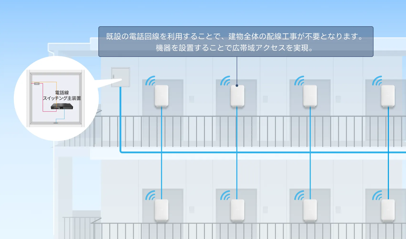2023年ADSLサービスの終了に伴いギガビット帯域幅へのアクセスには配線の引き直しが必要であり、宅内ユーザの生活に影響が発生します。また、高コストな工事追加費用、工事期間の調整といった問題があります。